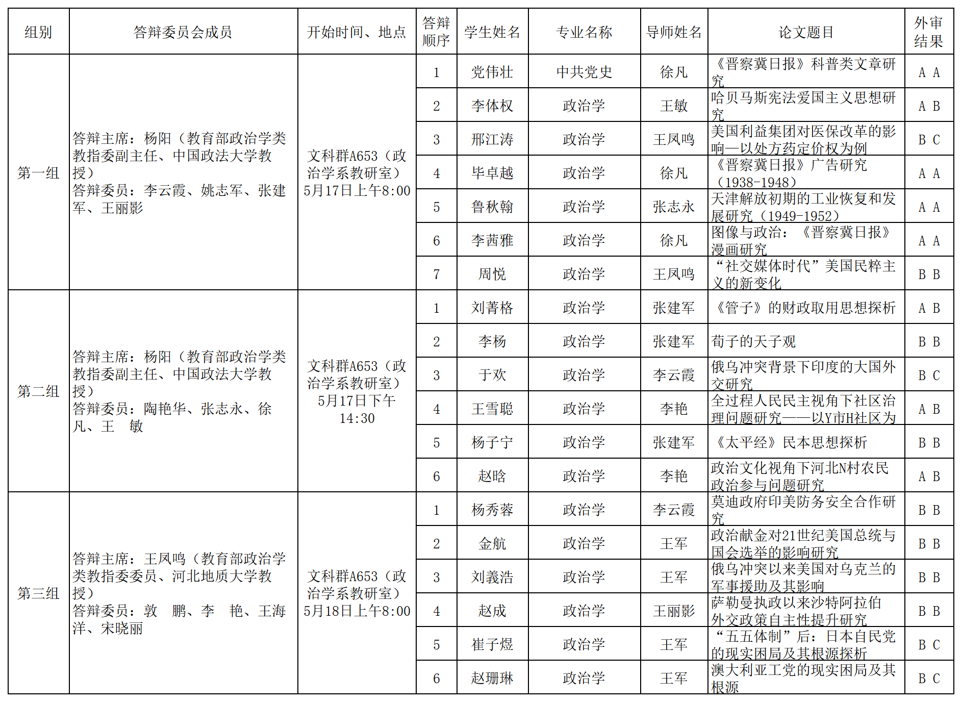 万博体育app 2024年政治学专业硕士学位论文答辩安排