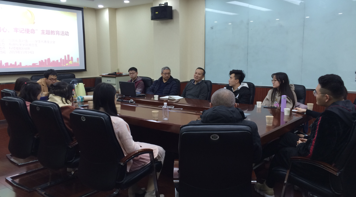 2019年11月14日上午,万博体育app 召开第四次调研座谈会,院长陈晓松、副书记兼副院长周亚、院长助理王大辉代表新一届学院领导班子,与学院研究生学生代表恳谈,学院学生工作负责人李小萌也参加了本次会议。会议由副书记、副院长兼“不忘初心、牢记使命”主题教育领导工作小组组长周亚主持。