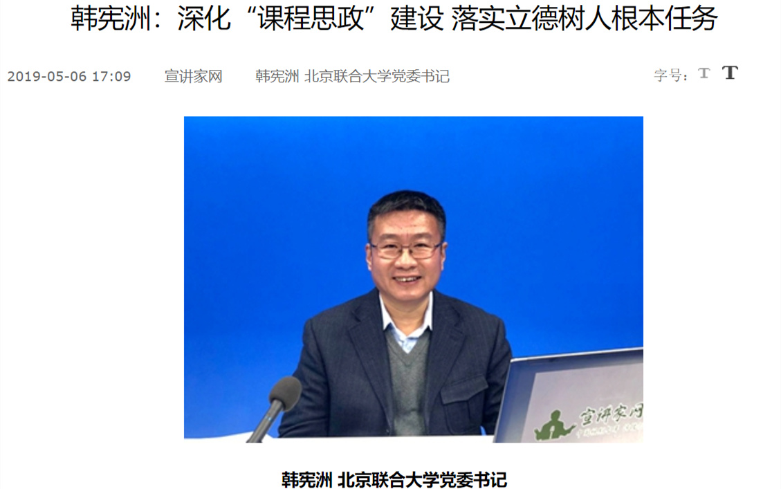 韩宪洲:深化“课程思政”建设 落实立德树人根本任务