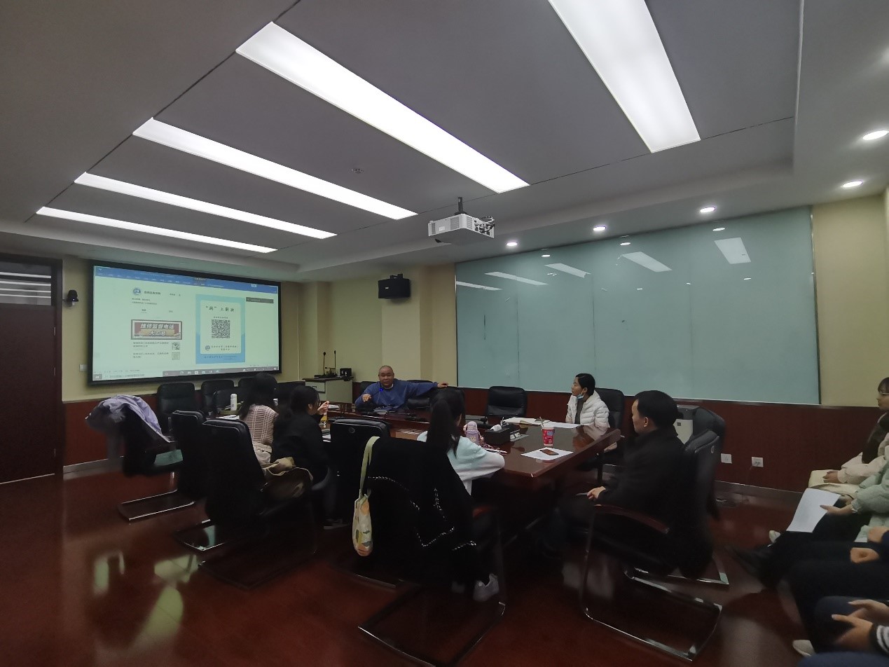 2021年12月8日下午15:30,在科技楼B区608,学院组织开展了第十五期“副书记工作室”交流会。会议由研究生会权益部副主席仲崇欣主持。党总支书记周亚老师、团委书记王娟老师参会,并邀请到了尾号为4的同学参加。