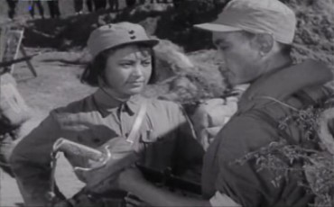 一次战斗中,雷振林因好胜而中计,情势危险、后悔莫及。高山冒着生命危险,将雷振林救出,自己却身负重伤。雷振林代表全排战士探望高山,得知她原来一直女扮男装,震惊之余,由衷感到钦佩,进而萌生爱情。人民解放军继续向前挺进,雷振林将心爱的指挥刀送给前来送行的高山,革命的情谊把两人的心紧紧连结在了一起。