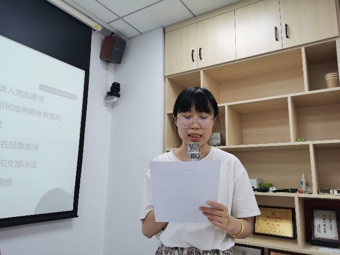最后,宋诗佳同志发表了自己发展为预备党员的感想,她表示在未来的时间里会以优秀党员的要求严格要求自己,不断进步!
