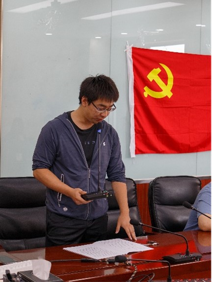 会上,王瑞宁同志首先宣读了入党志愿书。王瑞宁同志的入党介绍人李赫扬、张奥博同志发表了入党介绍人意见。任峻泽同志代表支部介绍了王瑞宁同志基本情况和培养期意见。王瑞宁同志共产主义信仰坚定,能够积极向党组织靠拢,积极参加学校和支部举行的各项活动。该同志尊敬师长,关心同学,乐于助人,处事得当,态度端正,积极参加体育活动,能努力按照一名共产党员的标准严格要求自己。
