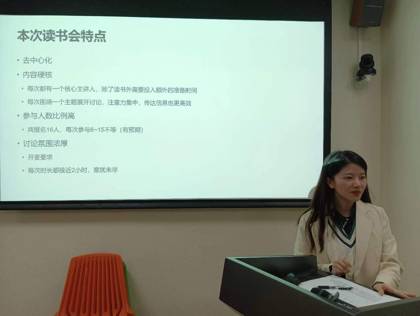 l 每次读书会由一位同学主讲,内容为本书的某一章节,主讲人提前提炼重点,依照重点领读