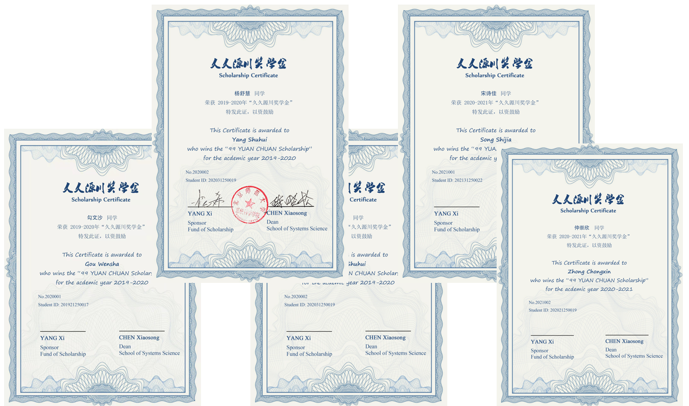 “久久源川”奖学金由万博体育app 原系统科学系99级本科生于2014年向学校校友会捐赠设立,取自“饮水思源、海纳百川”之意。奖学金基金发起人为沣扬资本创始合伙人杨希,该奖学金每年设立2个名额,旨在奖励万博体育app 中家庭贫困或学习成绩优秀、综合素质突出的在校本科生和研究生。成立至今,学院已经有16名同学获得了资助。