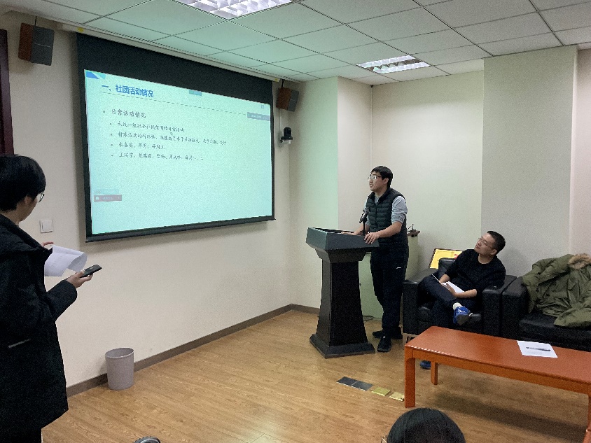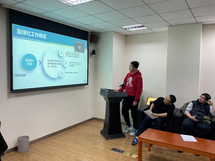 首先,篮球社、足球社、羽毛球社等11个社团的社团负责人从活动总结、经费规划、未来计划三个方面进行汇报,同时也就社团活动开展遇到的问题进行了说明。