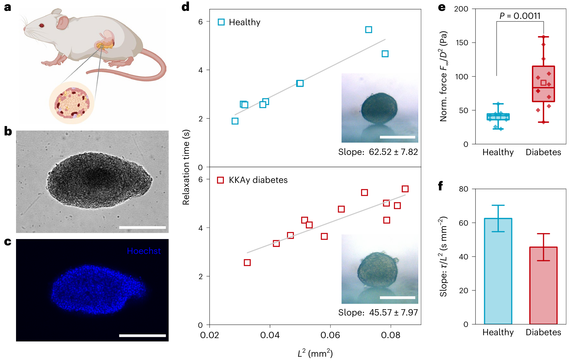 该研究不仅揭示了多细胞组织在短时间尺度下力学行为的内在物理规律,也为理解相关疾病的病理生理过程提供了新的思路。例如,研究发现糖尿病小鼠的胰岛组织比健康胰岛更“硬”,在受压时能产生更强的内部流体驱动力,从而导致其力学松弛时间反而更短,这种力学特性的改变可能与其功能异常有关。该成果将为肿瘤、发育以及再生医学等领域的发展提供重要理论支持,并为设计具有特定力学性能的工程化生物组织提供新的策略。