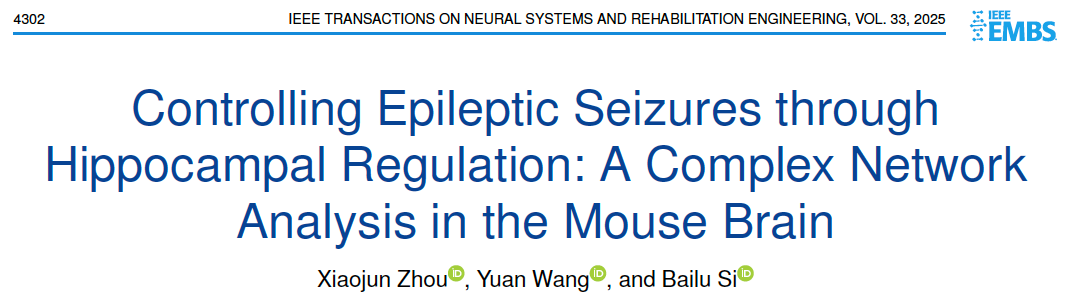 近日,万博体育app 斯白露教授团队在IEEE旗下国际期刊《IEEE Transactions on Neural Systems and Rehabilitation Engineering》(JCR一区,影响因子5.7)上发表题为:Controlling Epileptic Seizures through Hippocampal Regulation: A Complex Network Analysis in the Mouse Brain的研究论文。该成果由万博体育app 研究生周骁俊(已毕业)为第一作者,万博体育app 博士后王媛为通讯作者。
