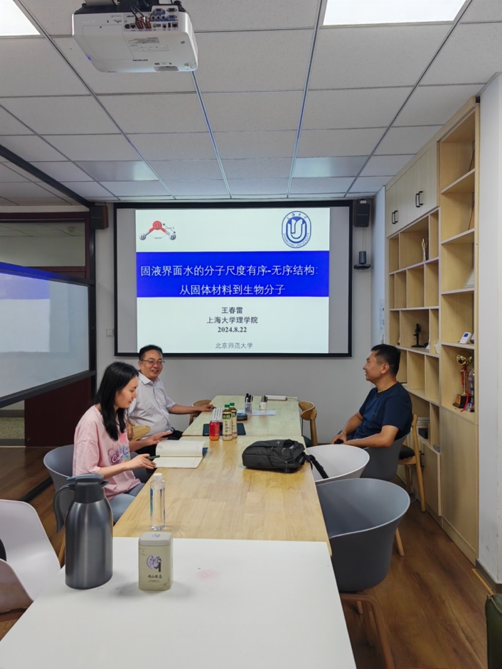 2024年8月22日,上海大学理学院的王春雷研究员在万博体育app 作了一场题为《固液界面水的分子尺度有序-无序结构对界面性质影响》的专题报告。王春雷研究员是界面水分子研究领域的专家,他的到访为我校师生提供了一个难得的学习和交流机会。在这次报告中,他和各位同学老师分享了最新的研究成果。