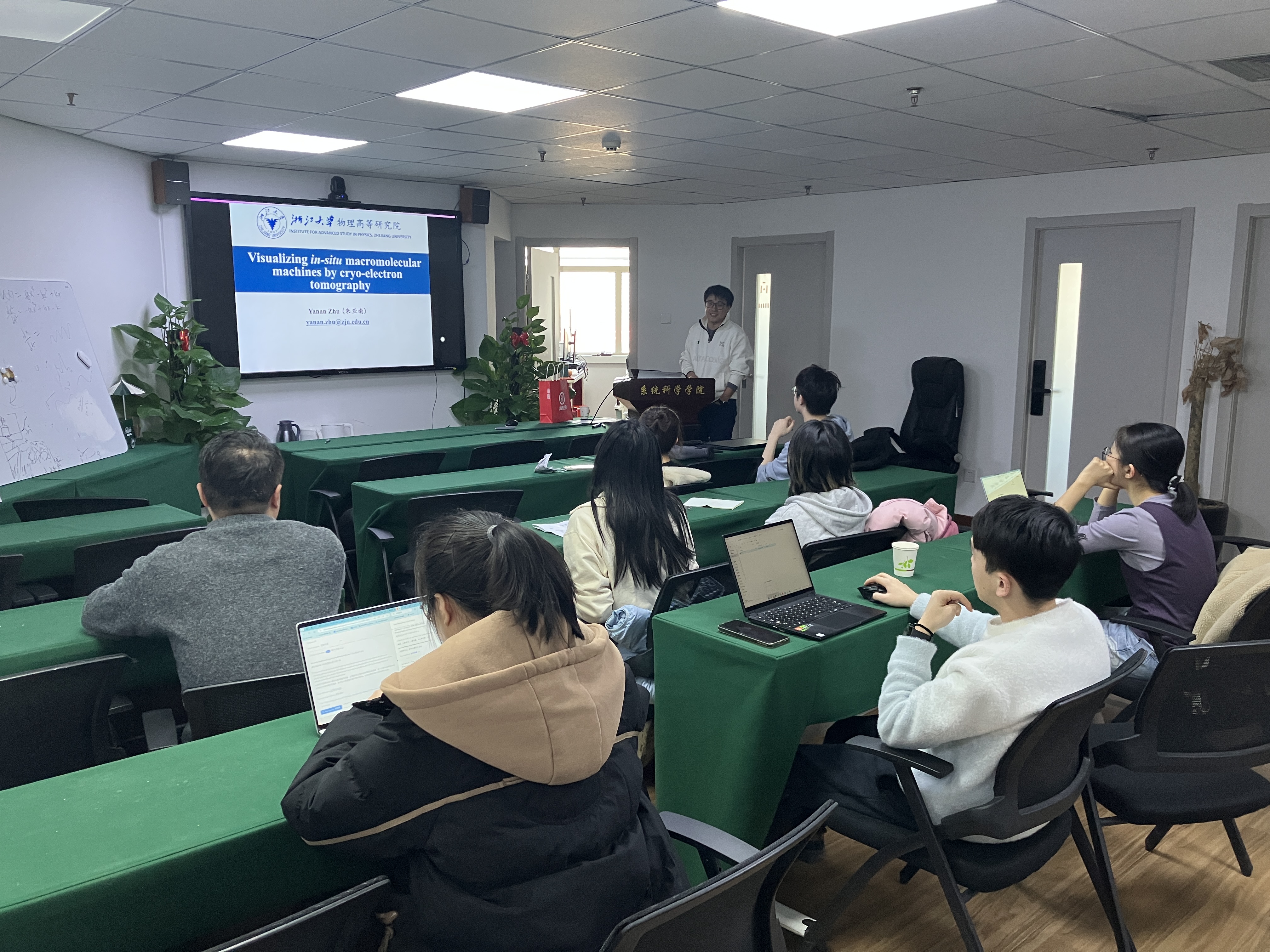 2025年3月6日下午,浙江大学物理高等研究院百人计划研究员、博士生导师朱亚南应邀在万博体育app 作了题为《冷冻电子断层扫描技术在原位解析大分子机器中的应用》的学术报告。朱亚南研究员长期致力于软物质与生物物理的交叉研究,专注于高分辨细胞冷冻电子断层扫描(cryoET)的开发与应用,致力于揭示生命分子和细胞体系的组织及作用机理。
