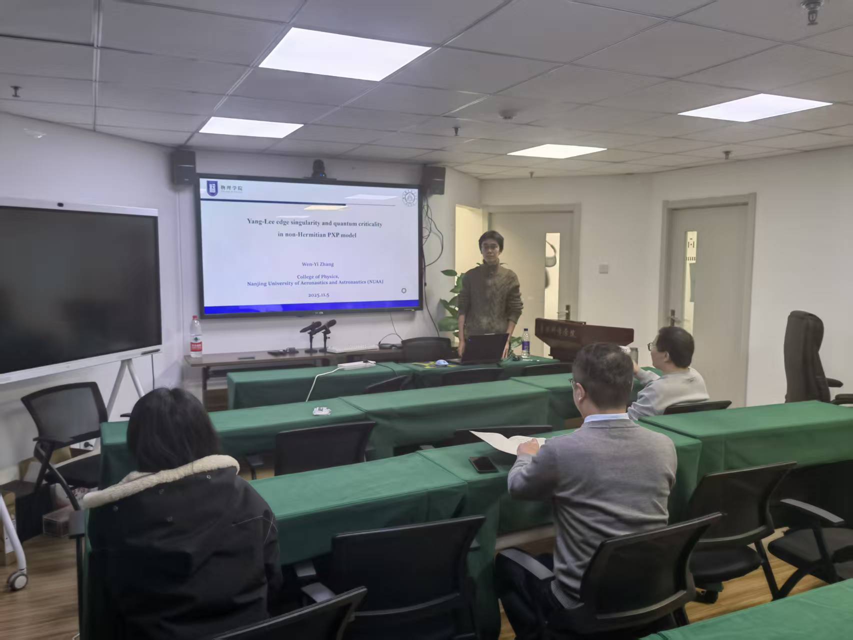近日,复杂量子系统研究专家南京航空航天大学物理学院尤文龙研究员及其团队优秀博士研究生张文乙同学应邀来访万博体育app ,围绕量子复杂系统领域开展学术交流,并于2025年11月5日上午和下午为全院师生作了专题讲座。