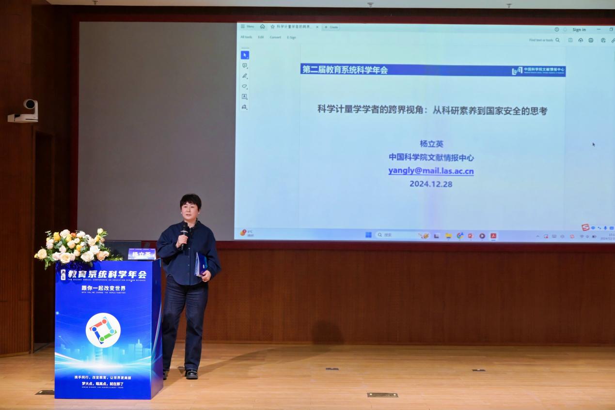 来自中国科学院文献情报中心特邀专家杨立英,作了主题为《科学计量学者的跨界视角——从科研素养到国家安全的级联思考》的报告。报告中,杨立英结合从事“中科院期刊分区表”20年的经验,以科学计量学的研究与实践视角,总结中国学术共同体在科学思维与科学素养方面的若干特点。通过列举德国历史教材的差异,探讨教育体系对科研人员思维方式的影响,并进一步思考人才素养在国际科技竞争及国家安全中发挥的关键作用。