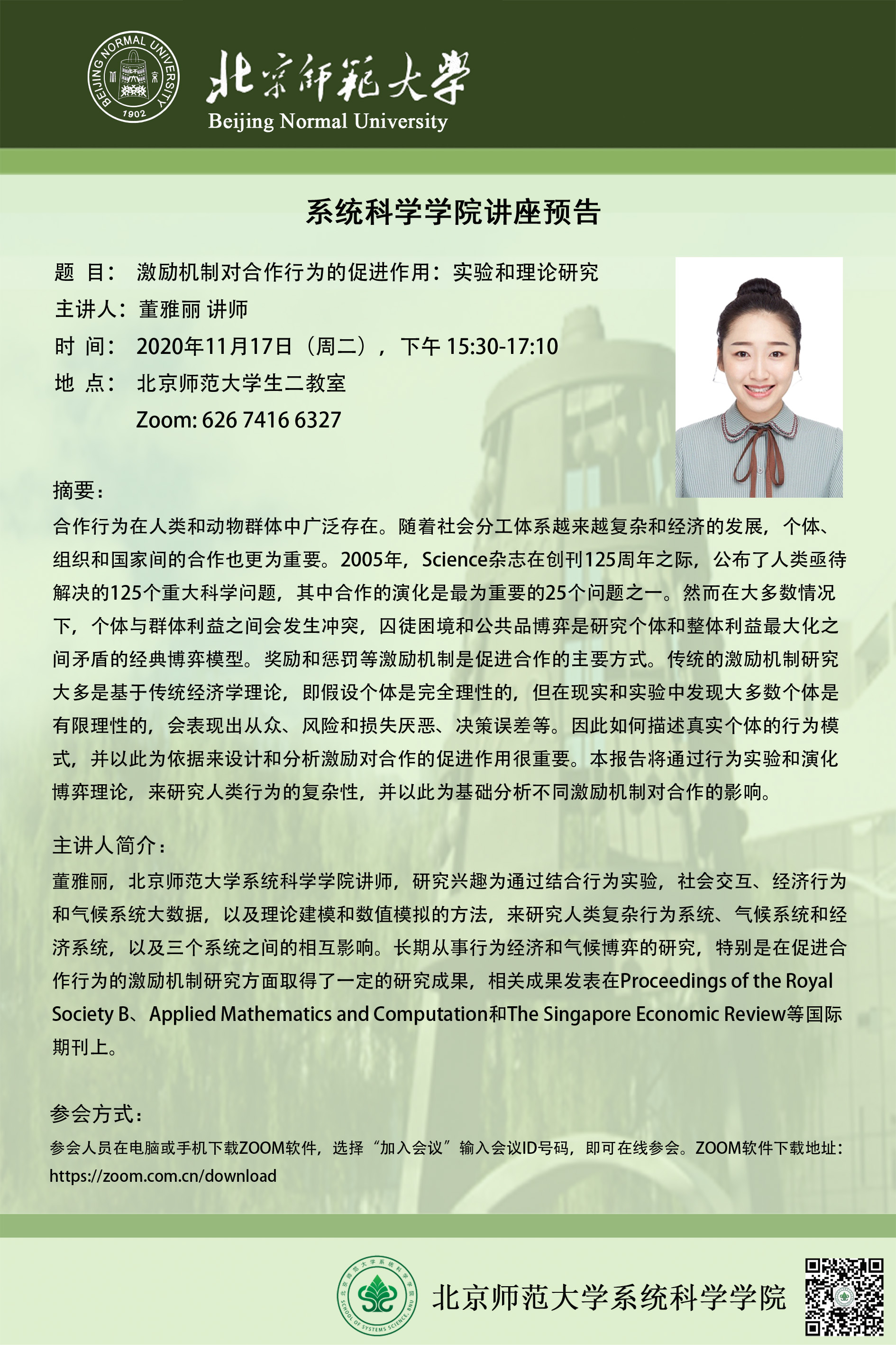 【讲座】激励机制对合作行为的促进作用:实验和理论研究
