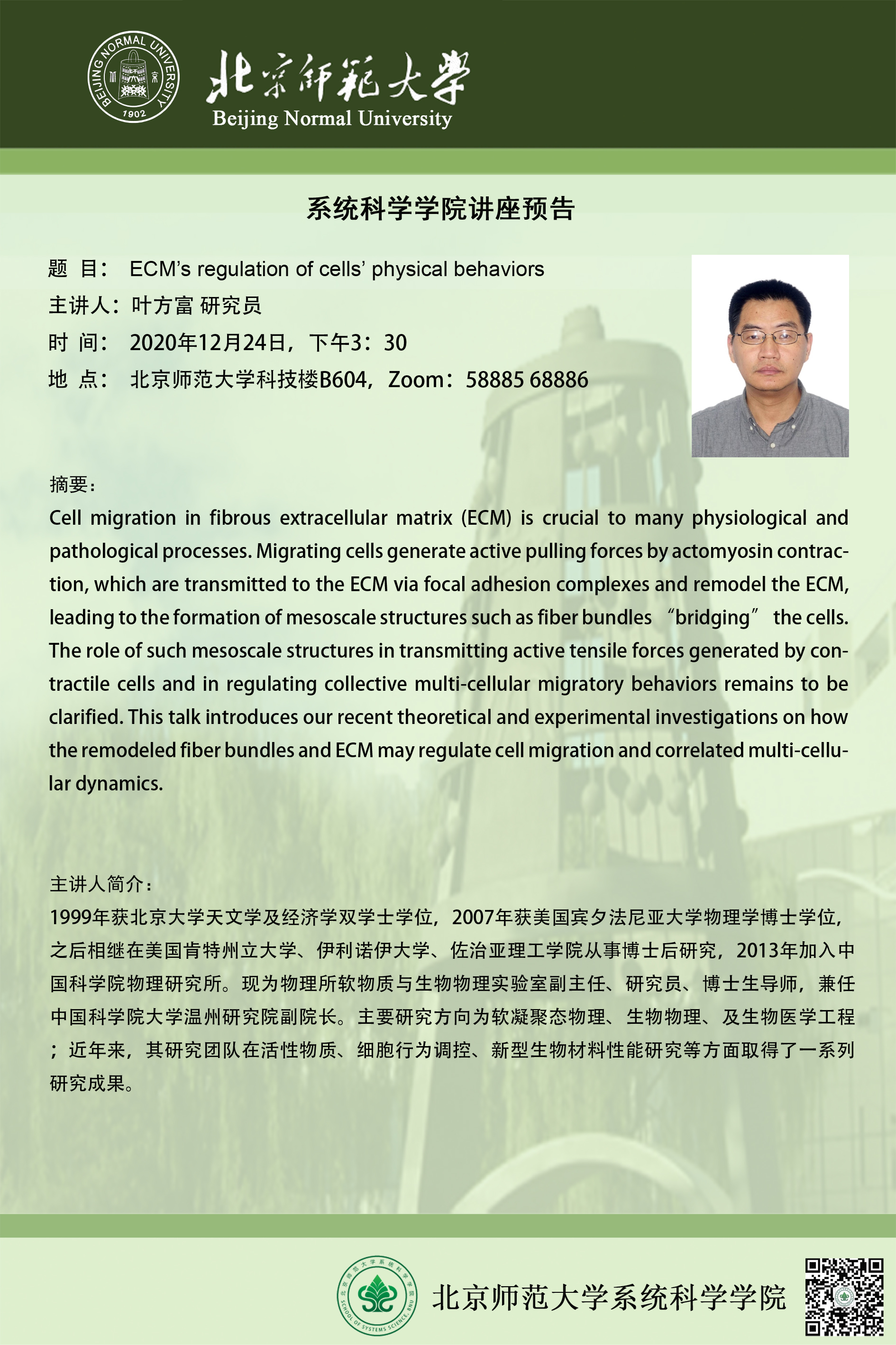 【讲座】ECM’s regulation of cells’ physical behaviors