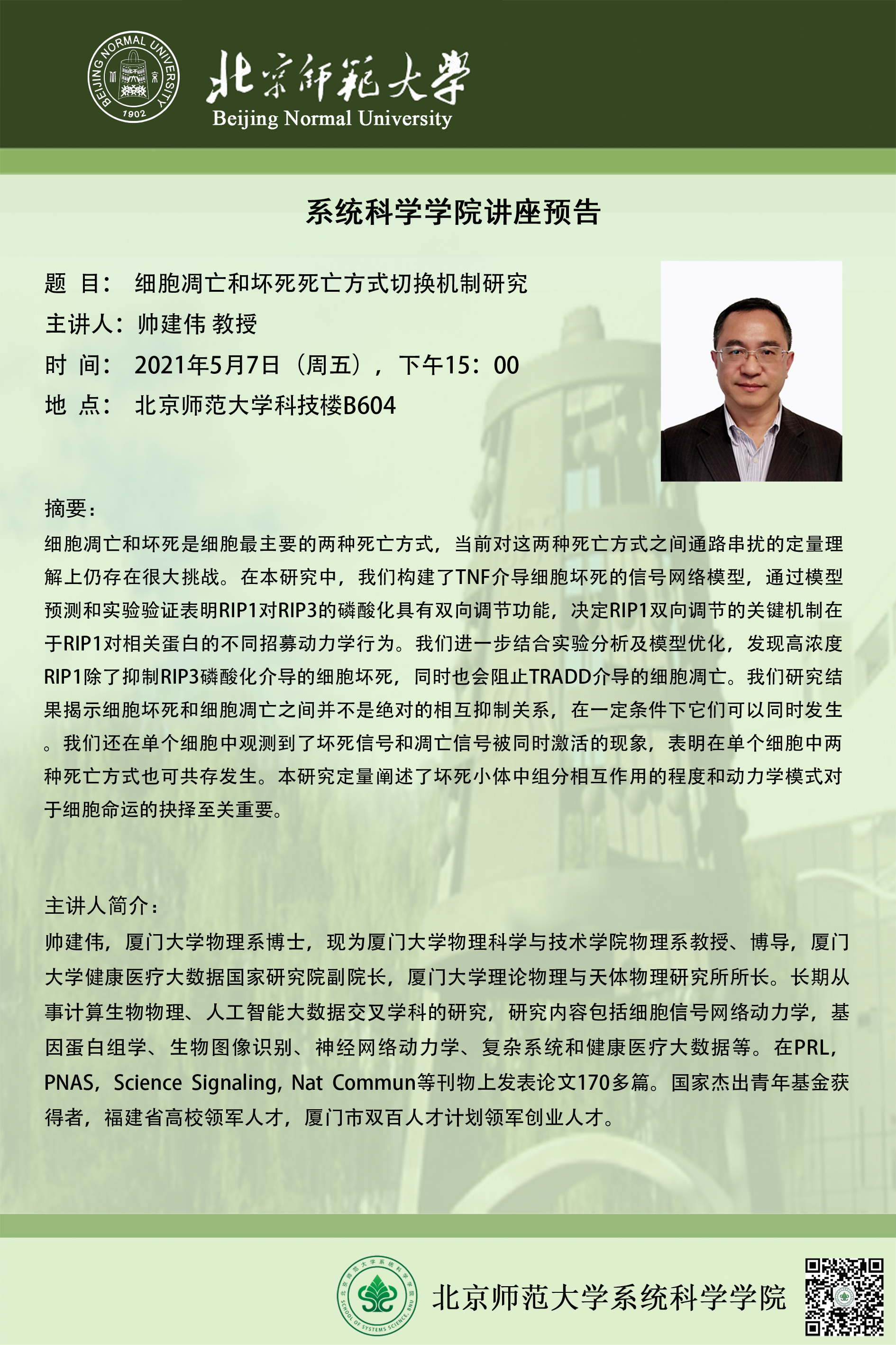 【讲座】细胞凋亡和坏死死亡方式切换机制研究