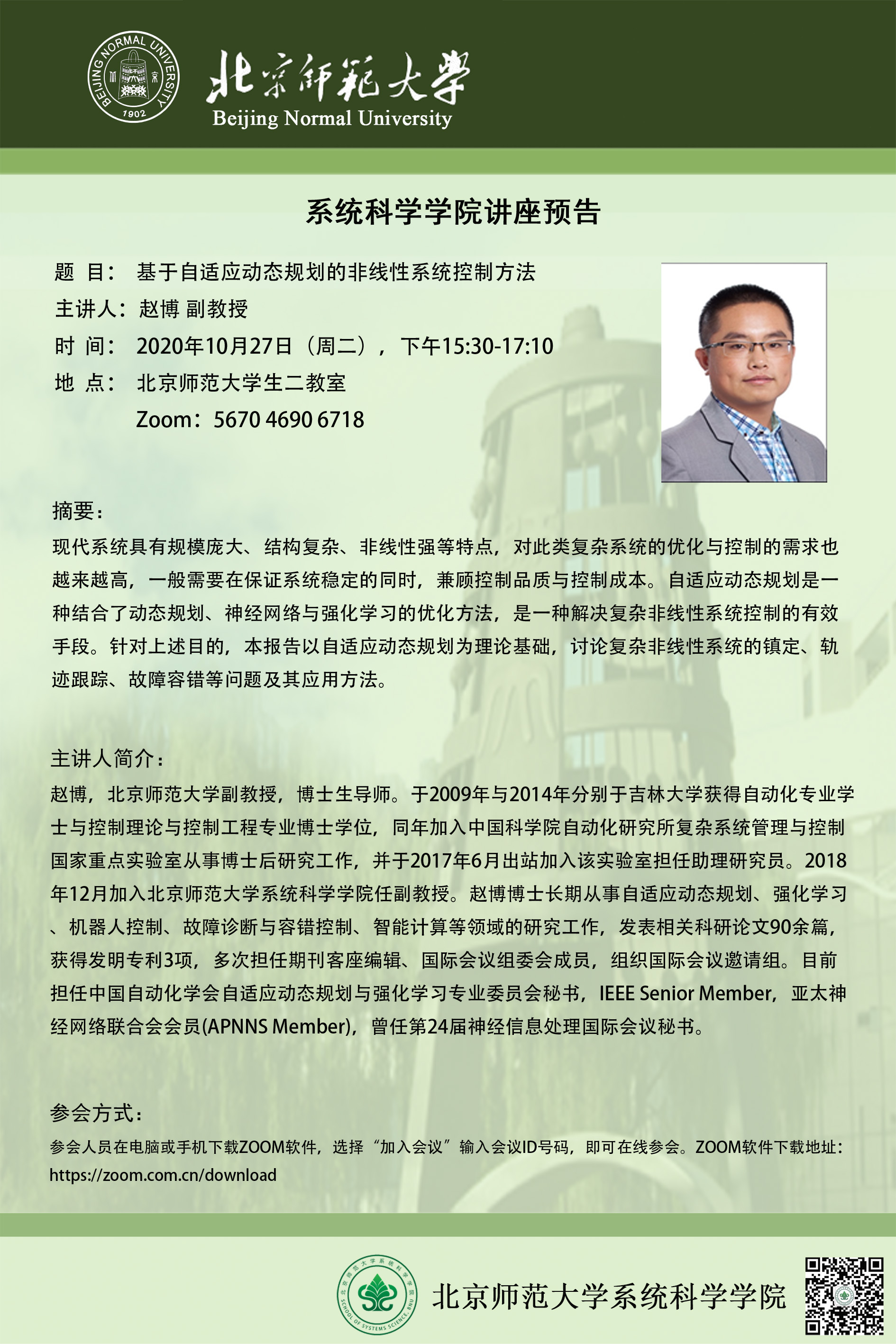【讲座】基于自适应动态规划的非线性系统控制方法