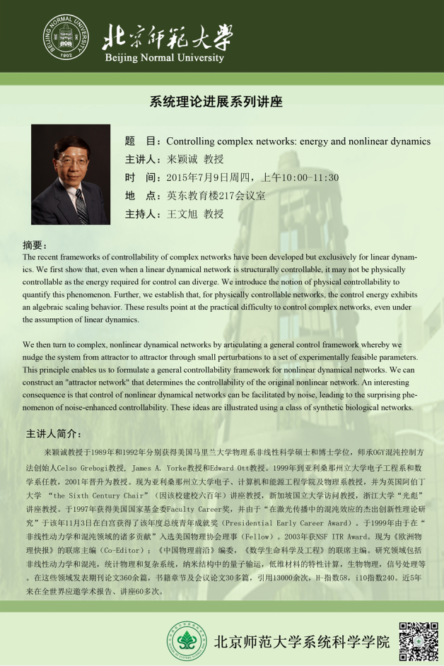 [讲座] Controlling complex networks: energy and nonlinear dynamics