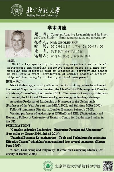[讲座] Complex Adaptive Leadership and Its Practical Cases Study, Embracing Paradox and Uncertainty