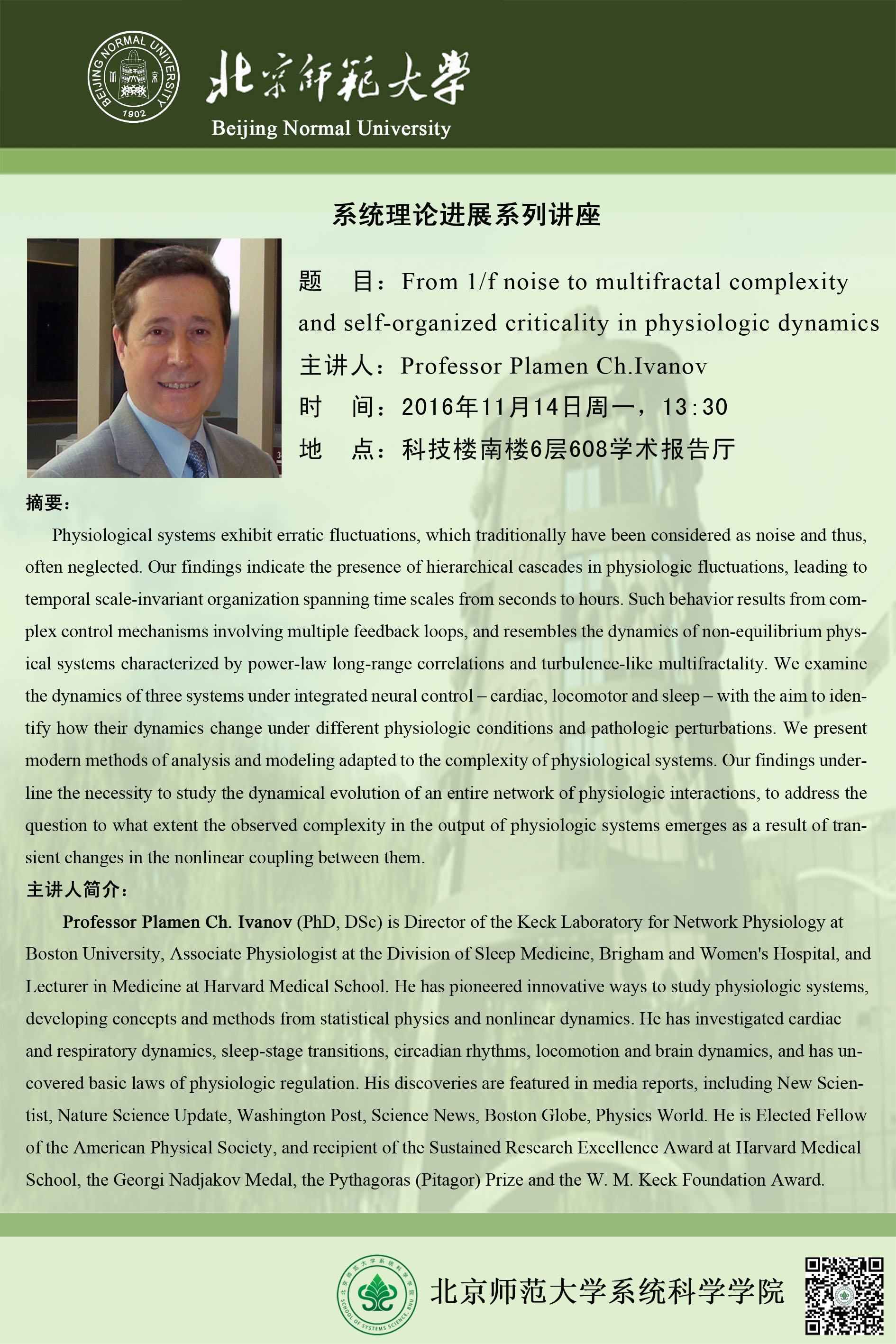 [讲座] From 1/f noise to multifractal complexity and self-organized criticality in physiologic dynamics