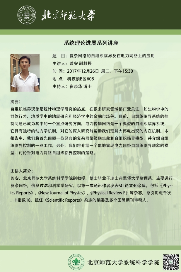 [讲座] 复杂网络的自组织临界及在电力网络上的应用