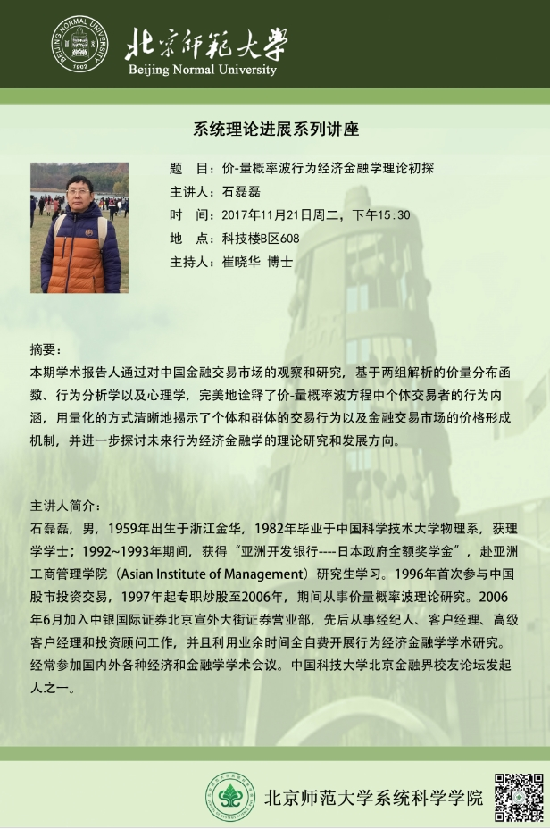 [讲座] 价-量概率波行为经济金融学理论初探
