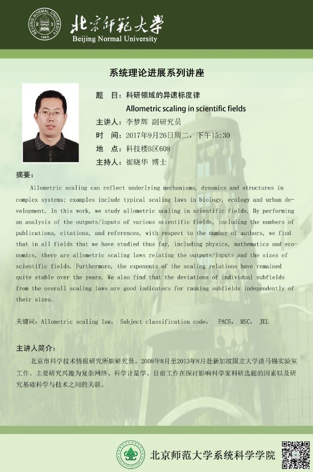 [讲座] 科研领域的异速标度律 Allometric scaling in scientific fields