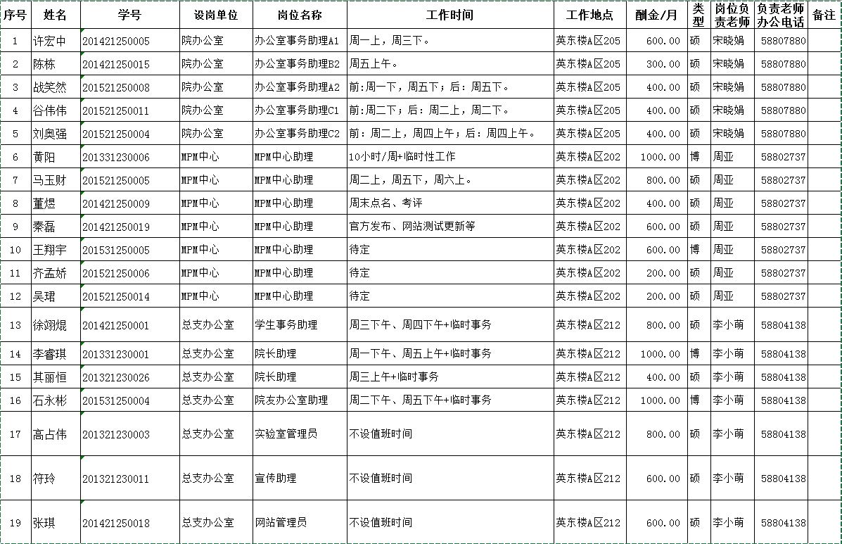 [公示] 万博体育app 勤工助学岗位聘任情况和值班安排公示
