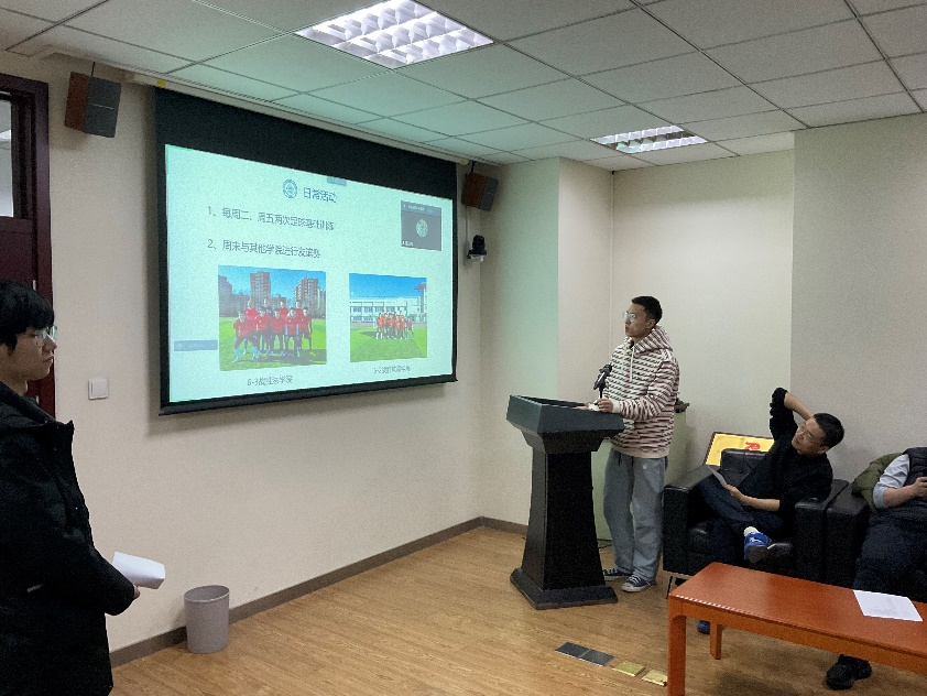 首先,篮球社、足球社、羽毛球社等11个社团的社团负责人从活动总结、经费规划、未来计划三个方面进行汇报,同时也就社团活动开展遇到的问题进行了说明。