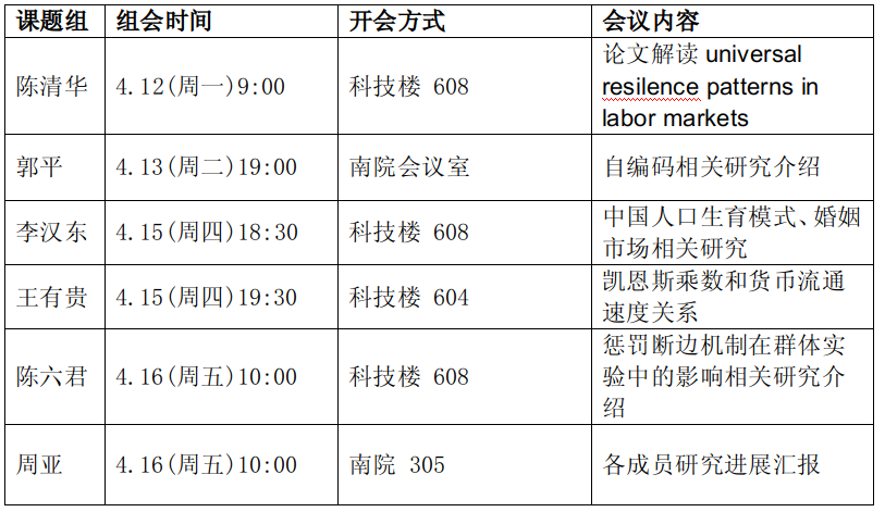 本周组会汇总信息如下: