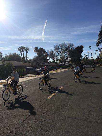 除此之外,机智的同学们还解锁了新的交通方式——小黄车。在飘着几丝浮云的湛蓝天空下,在傍着极富热带风情的树木的马路上,伴随着小黄车叮铃叮铃的清脆铃声,同学们结伴骑行。阳光正好,微风徐徐。在路的前方迎接我们的,是万博体育app ASU之行接下来更加美好的旅程。