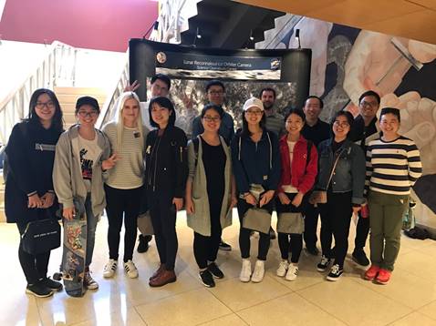 趁着"超级蓝月"的余热未过,同学们还参观了位于坦佩校区跨学科A楼的月球探险博物馆。漂亮的讲解员小姐姐十分热情和认真地向我们作了有关介绍,让我们了解和见识了许多新奇有趣的东西。此次月球探险博物馆之行着实是一次开阔视野、增长见识的经历。在这里,我们不仅对人类对月球的探索历程有了新的认识,还了解了月球不同表面物质的特点等,甚至亲眼目睹了从环月轨道探测照相机实时传输过来的月球画面以及一块真正来自月球上的石头,可谓是一饱眼福、大开眼界。