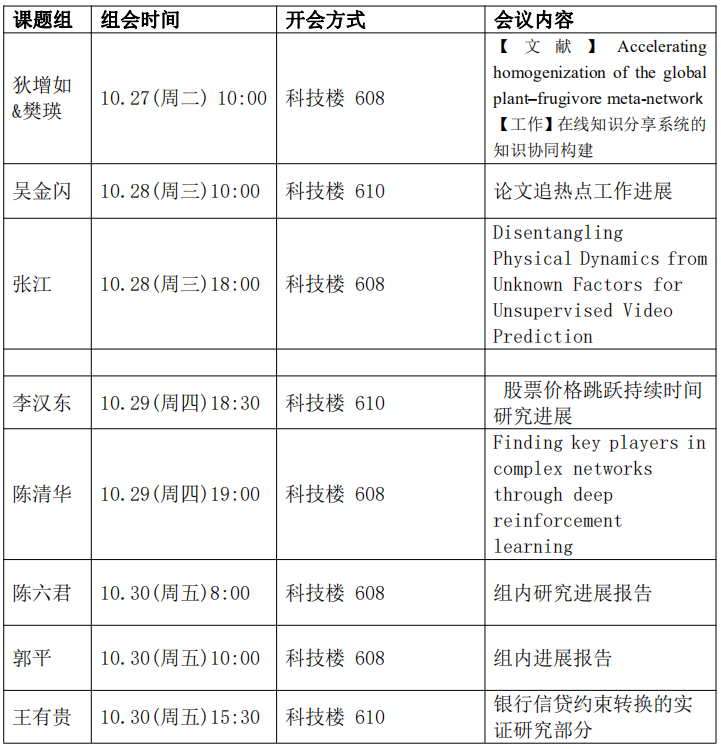 万博体育app 开放组会信息发布(10.26~11.1)