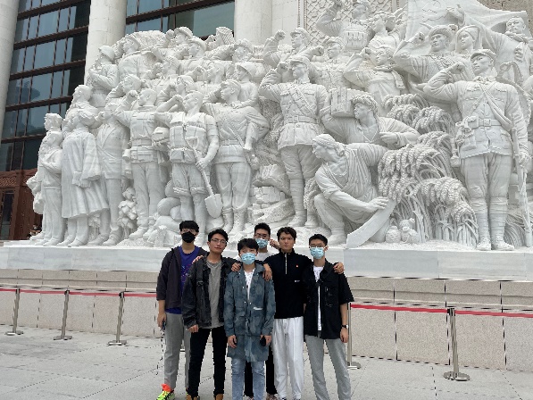 2022年10月1日上午,学院二十余名学生按时集合,在中国共产党党史展览馆广场的大型雕塑前合影留念,感受方向的指引和拼搏向上的力量。