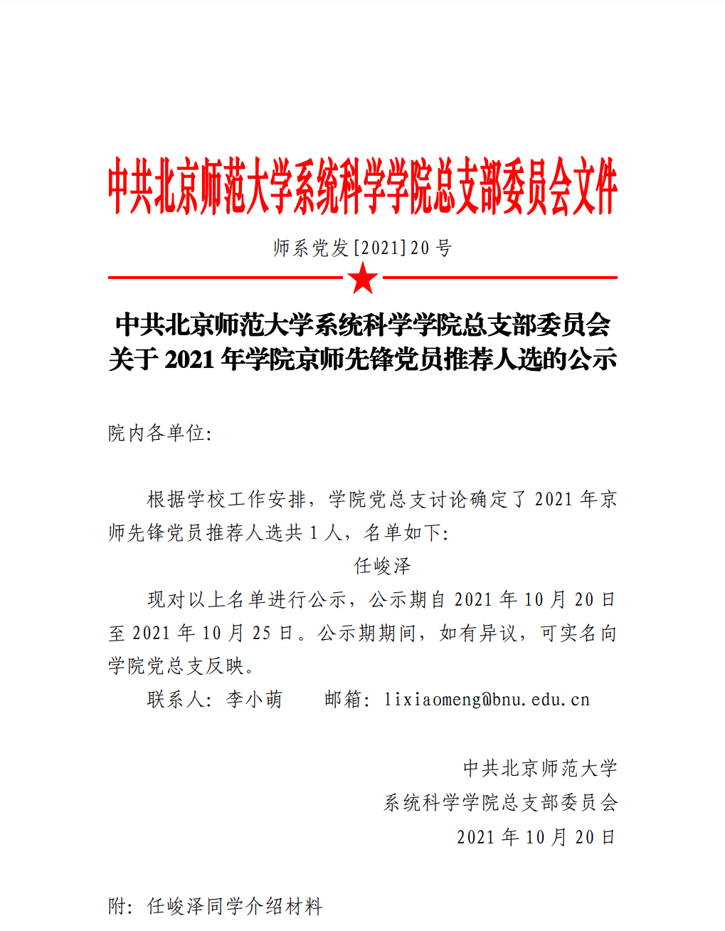 附:任峻泽同学介绍材料