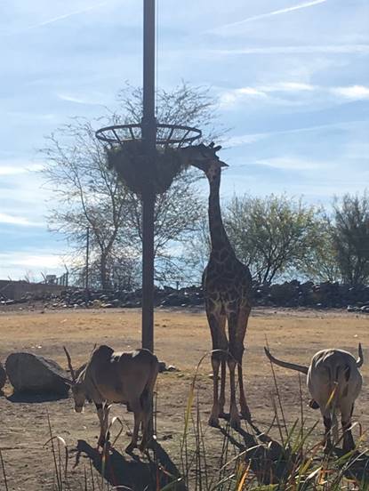在体验沙漠植物园后,同学们继续探索凤凰城的美景,这次大家来到了凤凰城动物园。凤凰城动物园是全美最大的非营利性动物园,由罗伯特·美泰成立于1962年。动物园占地0.51平方公里,超过1300多种动物生活在其中。整个动物园分为分为四个主要领域:亚利桑那州区、非洲区、热带区和儿童区。