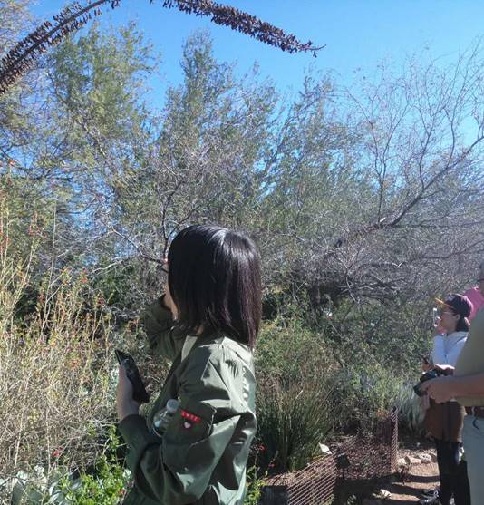 许多同学第一次见到这儿有3米多高的仙人球时都忍不住想和这个沙漠“擎天柱”合影。这周六大家抱着对沙漠植物的好奇来到了凤凰城沙漠植物园,终于有机会可以近距离观察多种沙漠植物。