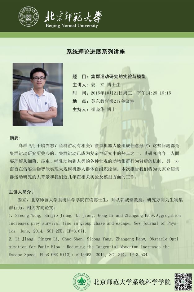 [讲座] 集群运动研究的实验与模型