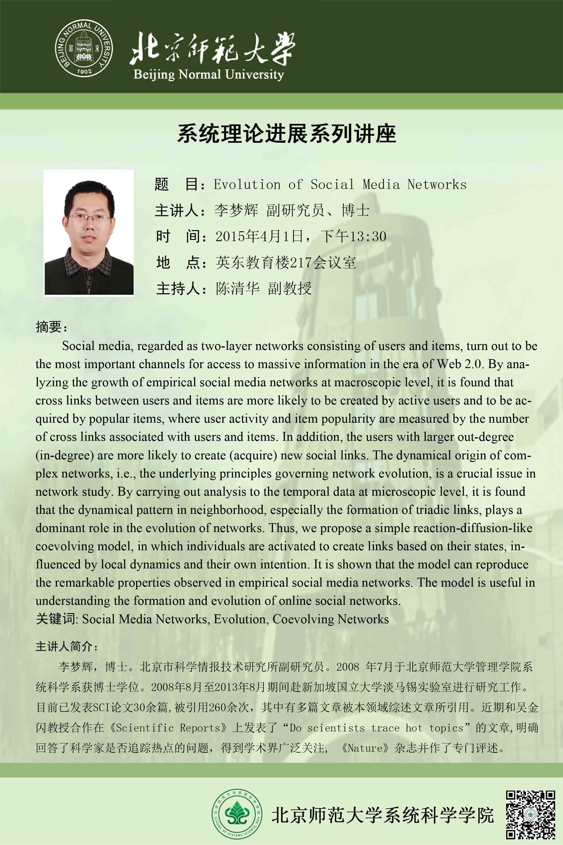 [讲座] Evolution of Social Media Networks