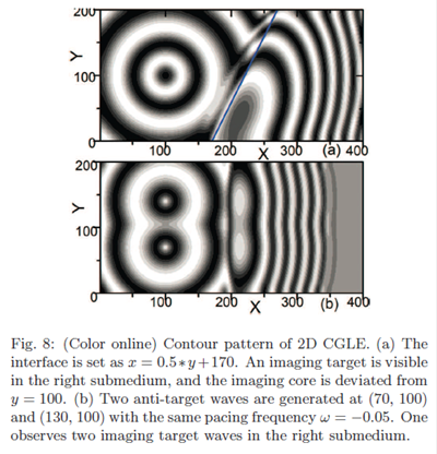 摘要:几个世纪以来,我们已经熟知波的各种传播行为,线性和非线性系统内波都可以反射、衍射、正常和反常折射等等。但是在线性系统内常见的成像现象目前在非线性系统还没有相关的研究报导。在本文,我们发现了非线性靶波的成像现象。通过在一个区域周期性驱动产生一个固定的靶波波源,我们在界面的另一侧观察到了明显的靶波像。这跟线性系统的成像完全不同,我们在没有借助仪器的情况下,仅利用非线性系统的非均匀性观察到了成像现象。在文章中我们详细讨论了成像的过程和各个特征。该现象的发现对于非线性波形为的理解,和设计新型的功能材料具有重要意义。