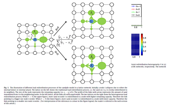 现实的系统,包括互联网、电力系统以及金融系统等,它们大都经历过罕见,但却规模极大的,由某些初始的小扰动所引发的超载级联失效。已有的复杂网络模型正在开展对于类似现象的研究。绝大多数复杂网络模型都是基于负载重新分配的过程,并且假设一旦某个节点失效,它的负载将被平均地或者根据某种偏好规则地转移到近邻的节点上。在实际的电力系统中,某个电站的超额负载往往倾向于分配给高负载容量的近邻电站。受此启发,我们在简易的沙堆模型基础之上,研究了一个异质的负载分配机制。我们发现,弱异质性的分配机制能够有效地缓解极限效应的发生,强异质性的机制可能会使得最终失效的规模增加。我们引入参数