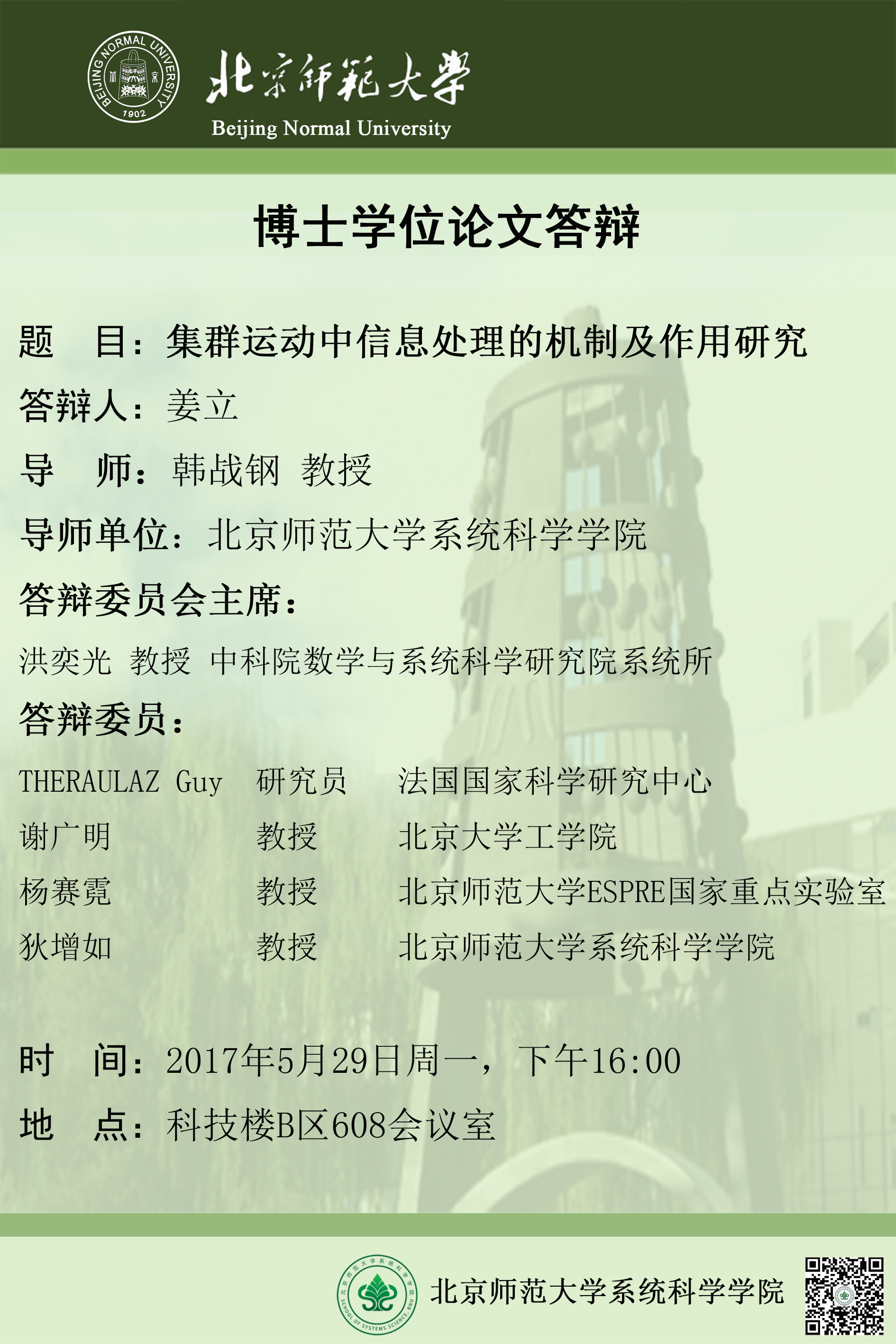 [博士答辩] 集群运动中信息处理的机制及作用研究