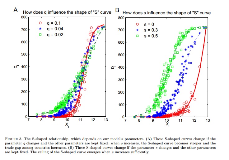 一国的经济实力越强,它就可以生产越多种类的产品,这是显见的事实。但是令人吃惊的是,国家的GDP数量级(Log GDP)与它所出口的产品种类数之间存在着一条S型的曲线。这意味着:多样性存在着一个天花板:超级大国并不比中等大国具有更强的多样性优势。本文对这一现象进行了解释。我们假设:国家所具有的基本能力:包括天然资源、技术、管理水平等等决定了它所能生产的产品。而这些基本能力之间的可替代性恰恰造就了多样性的”天花板“效应:火力和太阳能都同样可以用来创造电力,这使得超级大国并不如它们期待的那样垄断所有产品。