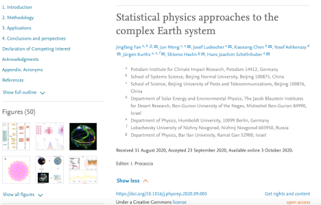 近日万博体育app 陈晓松教授团队在物理学顶级期刊Physics Reports杂志上发表题为:《Statistical physics approaches to the complex Earth system》的综述文章。