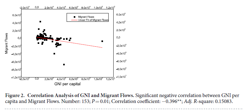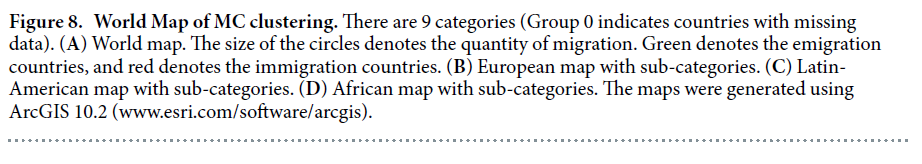 首先,两国之间的移民壁垒对于移入者和移出者呈负相关。简单而言,拥有较高移入成本的国家对移民的吸引度欠佳,其国民离开该国的意愿也更加强烈。其次,我们运用移民壁垒对各国进行聚类分析,试图就多边移民模式对各国进行分类,其结果呈现较为明显的地域和经济特性,也从这个角度验证了本文迁移模型的有效性。此外,我们还试图通过回归分析将移民壁垒进行分解,发现影响迁移成本的因素非常复杂,并通过GDP增长率、人均GNI、人类发展指数HDI等宏观指标实现了对迁移成本12.5%的解读。与早期的理论不同,我们发现近十年来,语言对于移民成本的影响作用已经很小,相对而言,移民网络的影响作用显著,即目标国特定族群的规模越大,就越能降低该类移民的迁移成本。
