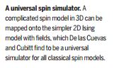 The idea of finding an all-encompassing model to describe the world around us has appealed to generations of scientists. Although we are very far from this ultimate goal, more modest steps can be taken if we focus on particular problems. De las Cuevas and Cubitt used concepts borrowed from computer science to show that all classical spin models (introduced initially to study magnetism) can be solved by tackling a slightly more complex, universal model (see the Perspective by Wehner). Thanks to these findings, it may be possible to physically simulate systems with complex interactions, using the well-understood two-dimensional Ising model with fields.