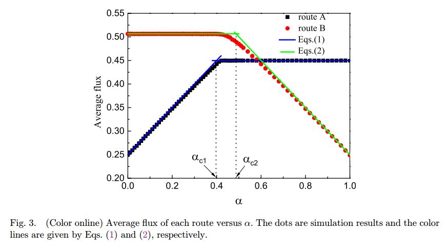 研究成果:Sun X-Y, Ding Z-J, Huang G-H, (2016). Effect of density feedback on the two-route traffic scenario with bottleneck, International Journal of Modern Physics C, 27 (6): 1650058.