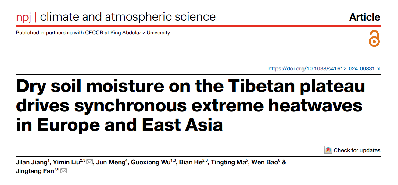 的樊京芳研究团队近期在地球复杂系统领域取得了重要突破,成功揭示了青藏高原土壤湿度如何驱动欧洲与东亚地区的同步极端热浪。该研究成果已发表于 npj Climate and Atmospheric Science 期刊,标题为《Dry soil moisture on the Tibetan Plateau drives synchronous extreme heatwaves in Europe and East Asia》。在这项研究中,研究团队采用了复杂性科学中的事件同步气候网络方法,结合大气动力学诊断和数值实验,揭示了青藏高原土壤湿度与欧洲和东亚极端热浪之间的强关联性。该研究突破了过去对极端气候现象的传统认知,展示了这些极端事件的非线性同步性及其潜在的物理机制。