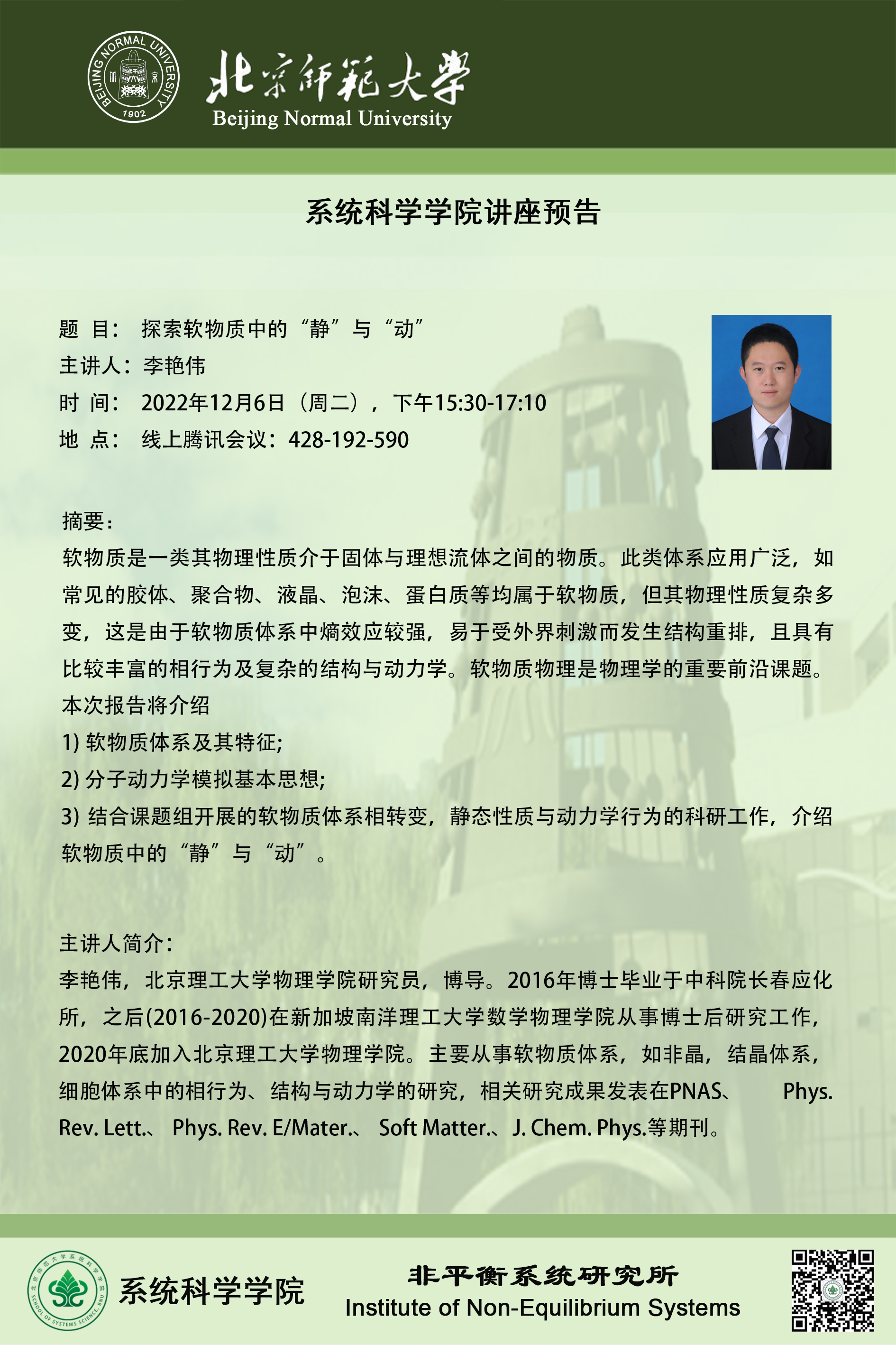 【讲座】探索软物质中“静”与“动”