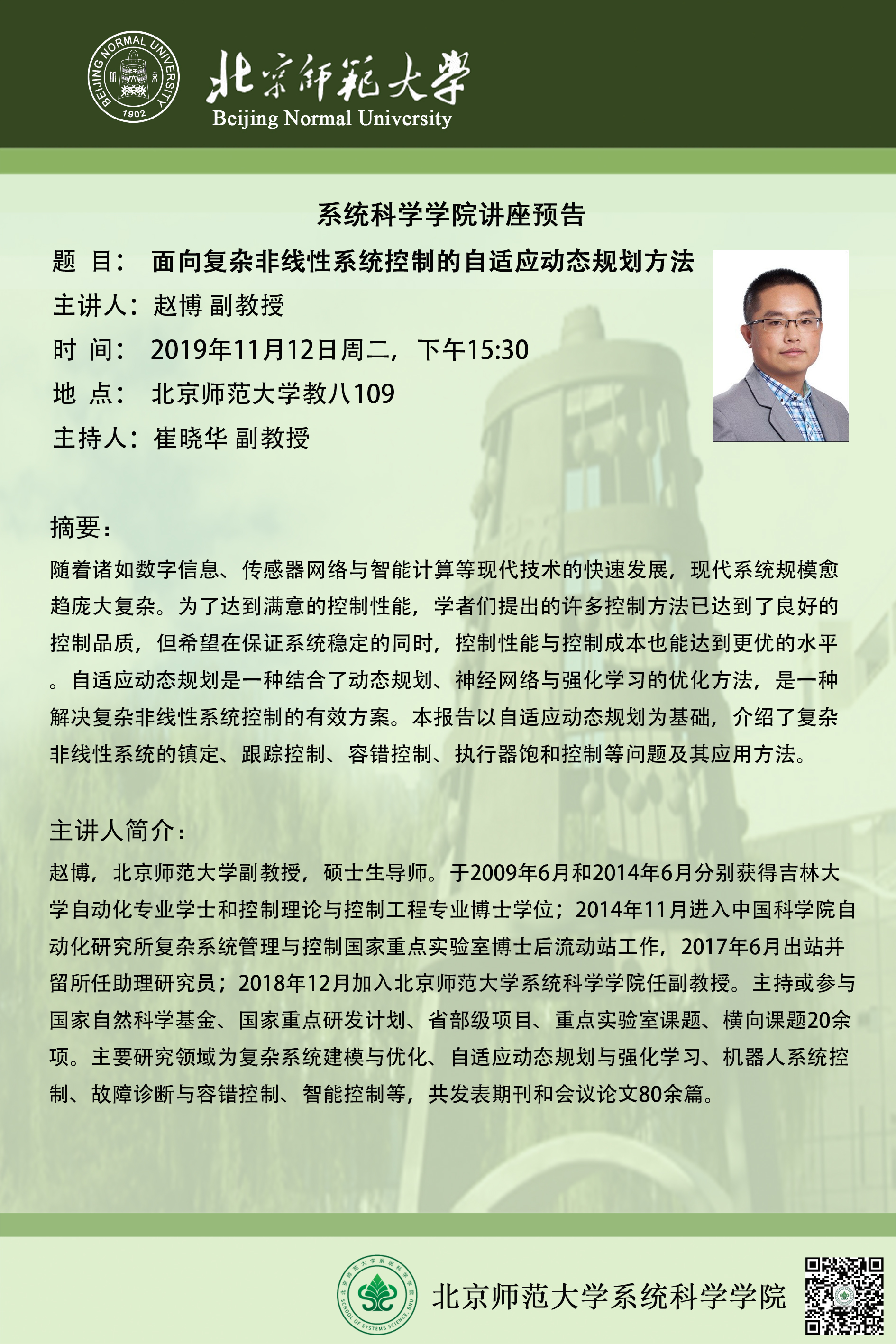 [讲座] 面向复杂非线性系统控制的自适应动态规划方法