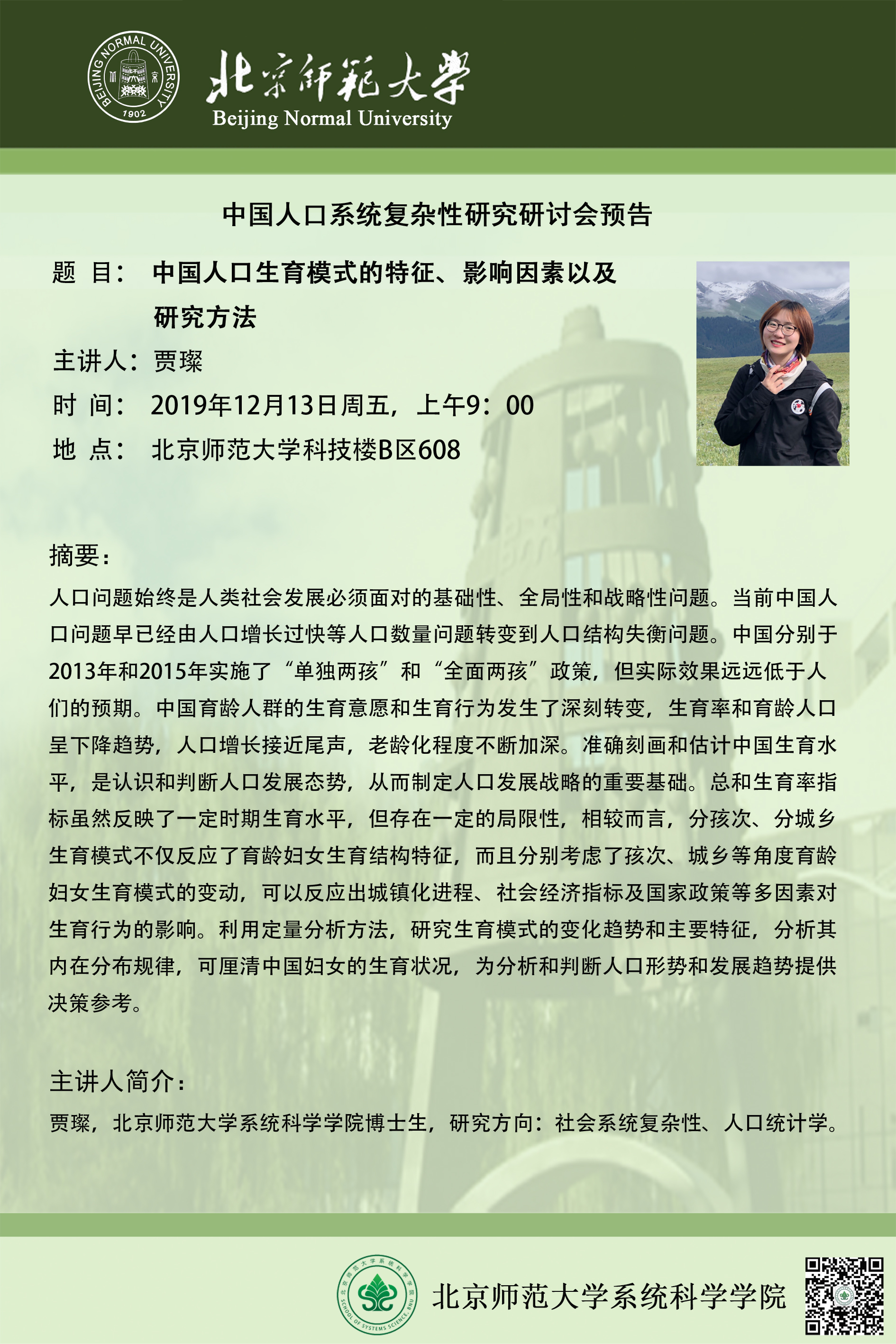 【研讨会】 中国人口生育模式的特征、影响因素以及研究方法